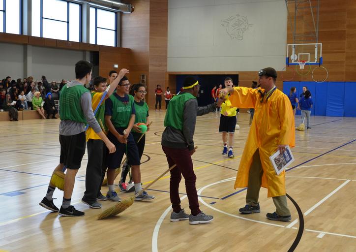 | Keywords: court game sport indoor For one week, Ansbach Middle/High School was turned into "Hogwarts School of Witchcraft and Wizardry," based on J.K Rowling's Harry Potter books. The highlight and culmination of the week-long project, hosted as part of "Read across America Week," was a Quidditch tournament and the award ceremony for the house cup. (U.S. Army photos: Bianca Sowders, USAG Ansbach Public Affairs) For one week, Ansbach Middle/High School was turned into "Hogwarts School of Witchcraft and Wizardry," based on J.K Rowling's Harry Potter books. The highlight and culmination of the week-long project, hosted as part of "Read across America Week," was a Quidditch tournament and the award ceremony for the house cup. (U.S. Army photos: Bianca Sowders, USAG Ansbach Public Affairs) |