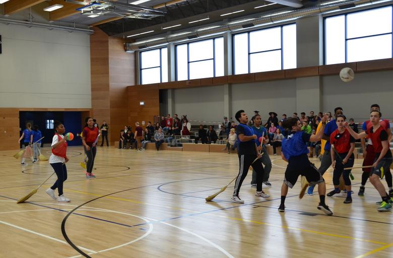 | Keywords: sport court game hall indoor For one week, Ansbach Middle/High School was turned into "Hogwarts School of Witchcraft and Wizardry," based on J.K Rowling's Harry Potter books. The highlight and culmination of the week-long project, hosted as part of "Read across America Week," was a Quidditch tournament and the award ceremony for the house cup. (U.S. Army photos: Bianca Sowders, USAG Ansbach Public Affairs) For one week, Ansbach Middle/High School was turned into "Hogwarts School of Witchcraft and Wizardry," based on J.K Rowling's Harry Potter books. The highlight and culmination of the week-long project, hosted as part of "Read across America Week," was a Quidditch tournament and the award ceremony for the house cup. (U.S. Army photos: Bianca Sowders, USAG Ansbach Public Affairs) |