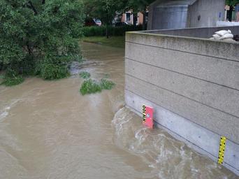 Keywords: high water level danube rainy weather wet dangerous promenade flood flooded road