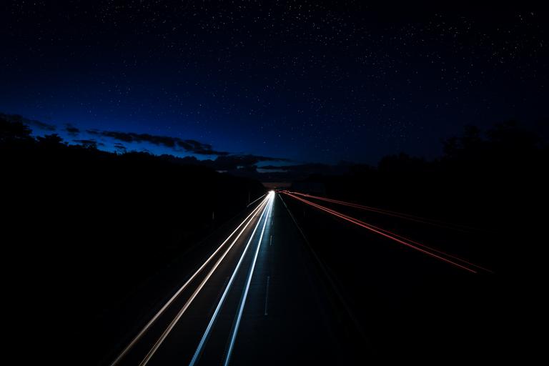 Keywords: highway light trail long exposure spotlight lights tracer speed traffic road night photograph light traces night vehicles sky transport car headlights brake lights back light lights track drive pkw darkness