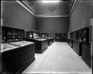| Keywords: field columbian museum chicago blackandwhite monochrome indoor warehouse black and white Higinbotham Hall 32, sign visible. Floor and wall cases of gems, gold, jewels and precious stones. Skylight and painted decorative medallions around ceiling. Field Columbian Museum. 1899. Original size and material: 8x10 inch glass negative Digital Identifier: CSGEO8446 Part of the Illinois Urban Landscapes Project: www.fieldmuseum.org/urbanlandscapes/ Higinbotham Hall 32, sign visible. Floor and wall cases of gems, gold, jewels and precious stones. Skylight and painted decorative medallions around ceiling. Field Columbian Museum. 1899. Original size and material: 8x10 inch glass negative Digital Identifier: CSGEO8446 Part of the Illinois Urban Landscapes Project: www.fieldmuseum.org/urbanlandscapes/ |