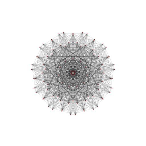 | Keywords: Higman-Sims-07.svg Higman-Sims graph as an orthogonal projection from a subset of the Leech lattice emphasizing a rotational symmetry of order 11 There are 11 possible such projections if we require all 22 points connected to the center point to form a regular 22-gon around it graphe de Higman-Sims comme projection orthogonale d'un sous-ensemble du réseau de Leech mettant en évidence une symétrie rotationnelle d'ordre 11 Il y a 11 telles projections possibles si on impose aux 22 points reliés au point central de former un 22-gone régulier autour de lui own Gro-Tsen 2010-10-30 Higman-Sims Graph |