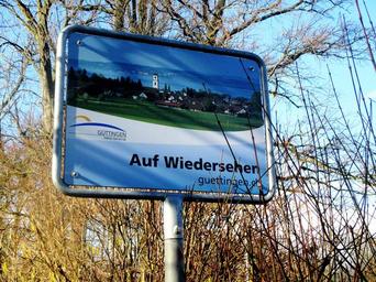 Keywords: hiking shield metal good bye shield of the municipality public design beautiful uferweg background lake constance güttingen thurgau switzerland