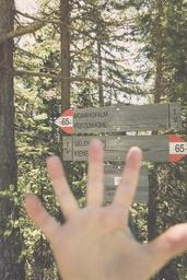 Keywords: hiking trail mountains wanderer landscape hike nature forest waymarks wall dolomites shield direction south tyrol directory mark