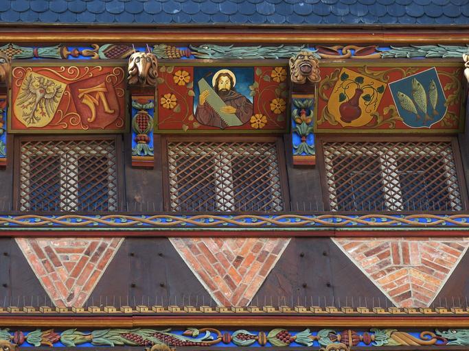 Keywords: hildesheim germany lower saxony old town historically facade building middle ages truss image