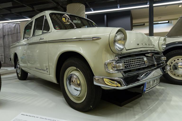 Keywords: Hillman Minx Serie III A (1960) - Verkehrsmuseum Dresden.jpg de Hillman Minx Serie III A 1960 - Verkehrsmuseum Dresden Hin und wieder gab es in der DDR Sonderkontingente mit Pkw westlicher Fabrikate die für den privaten Gebrauch importiert wurden Ähnlich wie exklusive DDR- Pkw z B Wartburg 313/1 waren diese Fahrzeuge in erster Linie für einen privilegierten Personenkreis bestimmt In ihren Besitz gelangten neben »verdienten« Bürgern der DDR wie Partei-Funktionären Mitarbeitern staatlicher Organe etc vorrangig die Bewohner Berlins Ost Pkw der englischen Marke Hillman wurden bis Anfang der 1960er Jahre in die DDR importiert Ab den 1970er Jahren kamen Fahrzeuge unter anderem der Marke Volvo Volkswagen Citroen und Mazda hinzu Ende der 1980er Jahre betrug der Anteil westlicher Pkw am Pkw-Gesamtbestand der DDR nur ca 1 š5V own 2016-03-06 13 00 01 ubahnverleih WikiTech-Tage Dresden 2016 Cc-zero Hillman Minx Series IIIA at Verkehrsmuseum Dresden Uploaded with LrMediaWiki |