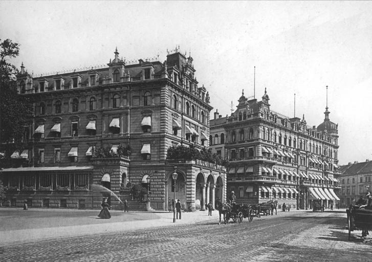 | Keywords: Hillmann Hotel - Herdentor - Bremen - around 1900.jpg en The street Herdentorsteinweg in Bremen Germany with the luxury hotels Hillmann on the left by Heinrich Müller and Europa on the right around 1900 de Der Herdentorsteinweg in Bremen mit den Luxushotels Hillmann links entworfen von Heinrich Müller und Europa rechts um 1900 Landesbildstelle Hg Bremen gestern und heute Edition Temmen Bremen 1998 author ca 1900 PD-old Hotels in Bremen Streets in Bremen Heinrich Müller architect Destroyed in Germany in 1944 1900 in Bremen |