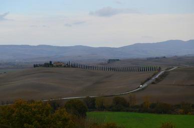 Keywords: hills tuscany italy clouds sky day summer landscape land mountains farm upland beauty the terrain outdoors scenic journey serenity the way road houses
