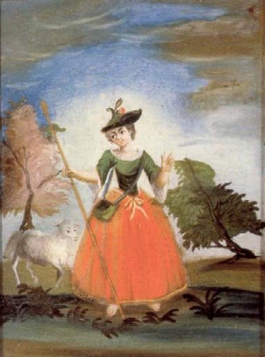 Keywords: Hinterglasbild Gute Hirtin Murnau.jpg Hinterglasbild Maria als gute Hirtin aus Murnau 2 Hälfte 18 Jahrhundert; Diözesanmuseum Freising http //www hvg-dgg de/museen/dioezesanmuseum-freising html ca 19th century anonymous Reproduction of a painting that is in the public domain because of its age PD-Art Reverse painting on glass Baroque paintings of Virgin Mary Paintings of the Divine Shepherdess Collections of Dombergmuseum Freising Location not applicable
