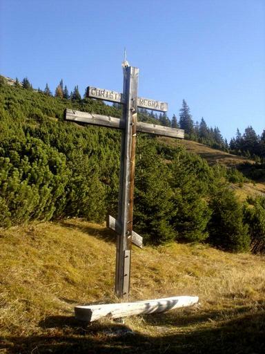 | Keywords: Hinterhornalm Kreuz.jpg en Russian orthodox cross near Hinterhornalm in the Karwendel Tyrol de Kreuz im russisch orthodoxen Stil bei der Hinterhornalm im Karwendel Tirol own Haneburger 2007 47 20 4 7 N 11 33 52 7 E heading NE Gleirsch-Halltal-Kette Images by Haneburger Orthodox crosses Gnadenwald |