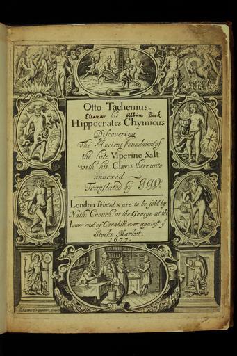 | Keywords: Hippocrates chymicus 1677 Title Page AQ7 (3).jpg Otto Tachenius died circa 1670 London Printed and are to be sold by N Crouch 1677 As in other branches of alchemy new ideas were attributed to great figures of the past in this case the ancient physician Hippocrates Chemical medicine linked metallurgy top in this image to the apothecary shop bottom http //othmerlib chemheritage org/record b1036814~S6 Catalog Information From the copy in the Roy G Neville Historical Chemical Library http //www chemheritage org/ Chemical Heritage Foundation Downloaded with permission from the Chemical Heritage Foundation as part of the Wikipedian in Residence initiative Chemical Heritage Foundation http //www chemheritage org/ Chemical Heritage Foundation 1677 PD-old-100 PD-old-100 cc-by-3 0 Chemical Heritage Foundation Images from the Chemical Heritage Foundation Alchemy books |
