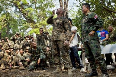 Keywords: Hires 130217-M-IJ457-062c.jpg en U S Marine Corps 1st Sgt Joshua Clayton center first sergeant Company A 1st Battalion 3rd Marine Regiment eats a live scorpion during a jungle survival course conducted by Royal Thai Marine Chief Petty Officer 1st Class Pairoj Prasansai Recon Battalion Marine Division in Ban Chan Krem Chanthaburi province Kingdom of Thailand Feb 17 The class was held to teach U S Marines basic jungle survival techniques as part of Exercise Cobra Gold 2013 CG13 CG 13 in its 32nd iteration is designed to advance regional security and ensure effective response to regional crises by exercising a robust multinational force from nations sharing common goals and security commitments in the Asia-Pacific region U S Marine Corps photo by Sgt Matthew Troyer/Released 2013-02-16 10 56 22 http //defense gov U S Departement of Defense PD-USGov Uploaded with UploadWizard Survival training United States Marine Corps in Thailand Cobra Gold 2013 |