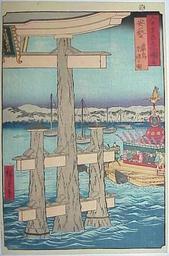 | Keywords: Hiroshige Aki Miyajima.jpg en Aki Miyajima Sairei no zu of the Famous Scenes of the Sixty States ja 六十余州名 図会 安芸 宮島 祭礼の図 http //www japaneseprints-london com/ukiyoe/images/landscapes9 jpg Creator Hiroshige 1853 PD-old-100 The Famous Scenes of the Sixty States Itsukushima-jinja torii Miyajima in art Kangensai |