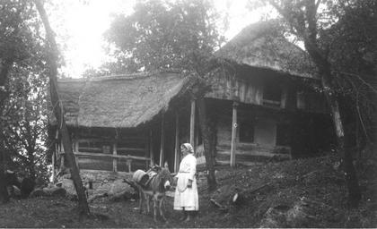 Keywords: Hiša na glagol.jpg Hiša na glagol hisa-vsakdanja-nosa-tovornistvo/semn-0002217 Creator Fran Vesel 1920-08-24 1944 Historical images of farmhouses in Slovenia Pack donkeys Donkey transport in Slovenia 1920 in Slovenia Photographs by Fran Vesel Historical images of wooden houses in Slovenia Thatched roofs in Slovenia Animal-powered transport in Slovenia Historical images of White Carniola |