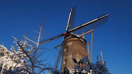 Keywords: historic mill winter snowy branches freezing netherlands freeze cold