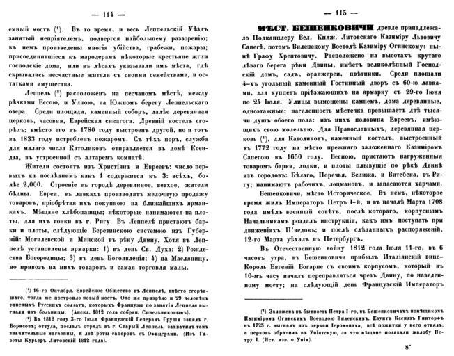 Keywords: Historical Data about Notable Places in Byelorussia 114-115.png 112-113 116-117 History of Bešankovičy History of Liepieĺ
