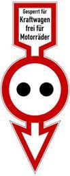 | View Original: | Historisches deutsches Verkehrszeichen Gesperrt für Kraftwagen frei für Motorräder.SVG (720x1800) | |||