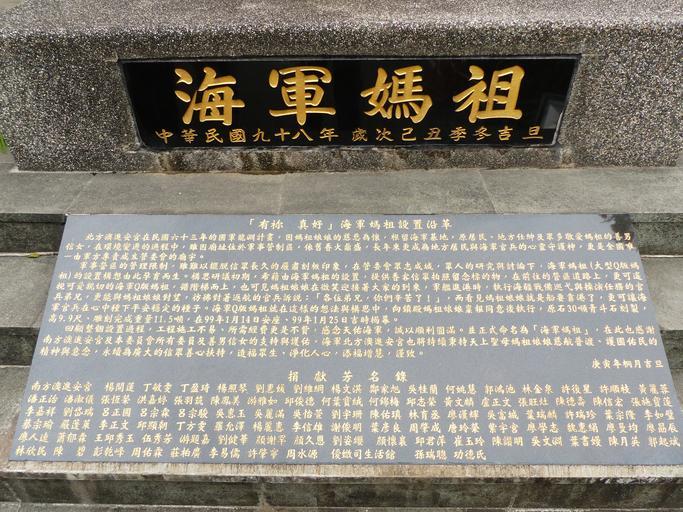 MAKE A MEME View Large Image History of Naval Mazu Statue 20130504.jpg zh-tw 北方澳 安宮海軍媽祖座前的設置沿   Own 玄史生 2013-05-04 Befangao Jingan Temple Inscribed stones in Taiwan Military culture of Taiwan 玄史生写 文庫 Taken with ...