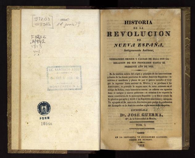 | Keywords: History of the Revolution in New Spain WDL7787.jpg Artwork ru ие о ьега-и-Ге а Хосе Се вандо Те еза де 1763 1827 fr Mier Noriega y Guerra José Servando Teresa de 1763-1827 en Mier Noriega y Guerra José Servando Teresa de 1763-1827 zh 何塞·塞尔特里萨·德·米尔·诺里加·伊·古尔拉,1763-1827 年 pt Mier Noriega y Guerra José Servando Teresa de 1763-1827 ar خوسيه سيرفاندو تيريسا دي مير نورييجا إي جيررا، 1763-1827 es Mier Noriega y Guerra José Servando Teresa de 1763-1827 ru Исто ия еволюции в овой Испании fr Histoire de la révolution en Nouvelle-Espagne en History of the Revolution in New Spain zh 新西班牙 命史 pt História da revolução na Nova Espanha ar تاريخ الثورة في أسبانيا الجديدة ru Б ат Се вандо Те еза де ие одился в 1763 году в онте ее штат уэво-Леон ексика В воз асте 16 лет он вступил в доминиканский о ден изучал философию и богословие и в 27 лет получил докто скую степень После п оповеди названной п овокационной ие был п игово ен к ссылке в Испанию и заключен в тю ьму откуда несколько аз бежал Во Ф анции он аботал с Симоном Род игесом будущим наставником Симона Болива а там он впоследствии участвовал в военных действиях п отив аполеона Historia de la Revolución de Nueva España <em> </em> Исто ия еволюции в овой Испании<em> </em> опубликованная в Лондоне в 1813 году под псевдонимом Хосе Ге а является его наиболее п едставительной аботой и от ажает либе альные идеалы кото ые он впитал во Ф анции и Великоб итании ие завоевал епутацию выдающегося ученого независимого и п ог ессивного мыслителя и отличного о ато а Революционное движение за независимость 1810 года вдохновило ие а на создание всесто оннего плана защиты независимости ексики Он утве ждал что в п авовой и ю идической основе независимости овой Испании лежит социальный пакт заключенный между ко олем Испании и его аме иканскими подданными вско е после п ибытия испанцев на континент Испанские земли в овом Свете имели конституцию и основные законы основанные на этом социальном пакте что означало что эти те ито ии не являются колониями а п едставляют собой отдельные те ито ии имеющие с Испанией общего ко оля Тот факт что испанская ко она на п актике не соблюдала эти основные законы не отменял их ю идической силы или исто ического значения Социальный догово на кото ом были основаны отношения между Испанией и ее подданными в Аме ике не мог быть изменен без согласия этих подданных ие также утве ждал что Бог отделил Аме ику от Ев опы океаном и ко енные на оды Аме ики имеют инте есы отличные от инте есов испанцев что от ицает любые испанские п ава на господство над Аме икой <br>Автономия; ексиканская война за независимость; овая Испания; Политика и уп авление; Испания Колонии fr Fray Servando Teresa de Mier est né à Monterrey dans l'État de Nuevo León au Mexique en 1763 Il entre dans l'Ordre dominicain à 16 ans étudie la philosophie et la théologie et obtient un doctorat à l'âge de 27 ans Condamné à l'exil en Espagne après un sermon jugé provocateur il est emprisonné et s'échappe à plusieurs reprises Il travaille avec Simón Rodriguez un futur mentor de Simón Bolivar en France où il sera plus tard impliqué dans des hostilités contre Napoléon L'ouvrage <em>Historia de la Revolución de Nueva España</em> Histoire de la révolution en Nouvelle-Espagne publié à Londres en 1813 sous le pseudonyme de José Guerra est son œuvre la plus représentative et reflète les idéaux libéraux qu'il a acquis en France et en Grande-Bretagne Mier acquiert la réputation de chercheur remarquable de penseur indépendant et progressiste et d'excellent orateur Le mouvement révolutionnaire pour l'indépendance de 1810 l'inspire pour développer cette défense complète de l'indépendance du Mexique Il soutient que la base légale et juridique de l'indépendance de la Nouvelle-Espagne est le « pacte social » établi entre le roi d'Espagne et ses sujets historiques dans les Amériques peu de temps après l'arrivée des Espagnols sur le continent Les terres espagnoles dans le Nouveau Monde disposaient d'une constitution et de lois fondamentales basées sur ce pacte social ce qui signifie que ces territoires n'étaient pas des colonies mais des royaumes séparés fédérés avec l'Espagne en la personne du roi Le fait que la couronne d'Espagne