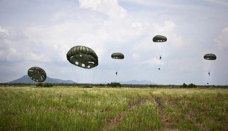 Keywords: Hit the Ground Running (8495306800).jpg Royal Thai Marines with 1st Long Range Reconnaissance Platoon connect with the ground after parachuting out of a C-130 Hercules during bilateral parachute jump training as a part of Cobra Gold 2013 in the Kingdom of Thailand Feb 18 Thailand and the United States are committed to working together in areas of common interest for the stabilization of regional security The 31st MEU is the only continuously forward-deployed MEU and is the Marine Corps ™ force in readiness in the Asia-Pacific region U S Marine Corps photo by Lance Cpl Katelyn Hunter https //www flickr com/photos/marine_corps/8495306800/ Hit the Ground Running 2013-02-18 15 58 https //www flickr com/people/40927340 N03 Marines from Arlington VA United States PD-USGov United States Marine Corps Official Page https //flickr com/photos/40927340 N03/8495306800 2016-09-03 22 51 48 United States Government Work Blue Cobra Gold 2013 Grass Green Hercules Reconnaissance Security Military in Thailand Amphibious forces Parachutes |