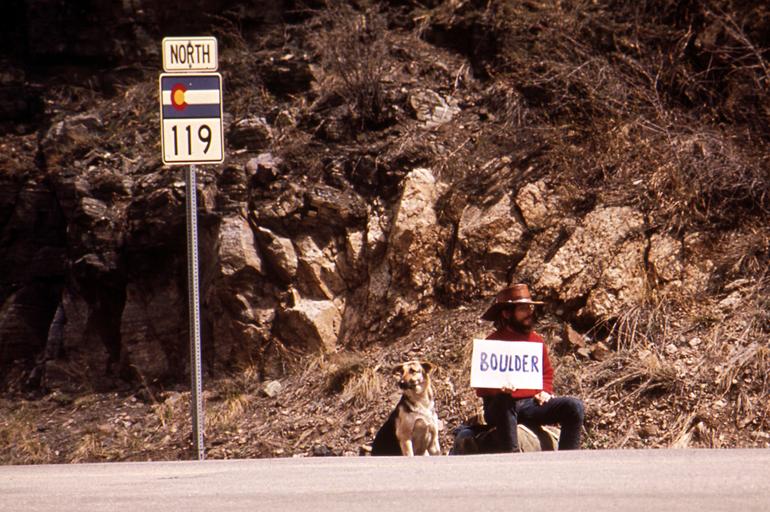 | Keywords: Hitchhiker waits for ride from Black Hawk to Boulder (Nara) - 544807(enhanced).jpg en This is reworking of a previous picture HITCHHIKER WAITS FOR RIDE FROM BLACK HAWK TO BOULDER - NARA - 544807 tif It's cropped color enhanced in Photoshop cleaned the road for dust and using layer to enhance the letters on the sign I reduced to size some and gave it a little sharpen 2013-07-08 17 02 27 File HITCHHIKER WAITS FOR RIDE FROM BLACK HAWK TO BOULDER - NARA - 544807 tif McAllister Bruce 1936- Photographer 3823134 <br /> <gallery> File HITCHHIKER_WAITS_FOR_RIDE_FROM_BLACK_HAWK_TO_BOULDER_-_NARA_-_544807 tif tif File HITCHHIKER_WAITS_FOR_RIDE_FROM_BLACK_HAWK_TO_BOULDER_-_NARA_-_544807 jpg jpg </gallery> NARA-cooperation PD-USGov Hitchhiking Men with dogs Colorado State Highway 119 |