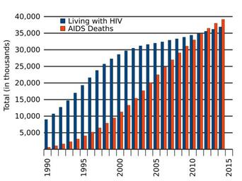Keywords: HIV and total AIDS deaths worldwide.svg translate yes en AIDS cases worldwide showing the number of people living with HIV each year since 1990 and the total cumulative number of deaths Data from http //www unaids org/sites/default/files/HIV2013Estimates_1990-2013_22July2014 xlsx UNAIDS GAP Report 2014 2014-10-19 own Delphi234 other versions cc-zero AIDS statistics |