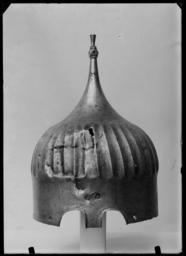 Keywords: Hjälm, Turkiet, 1400-talets slut, s.k. turbanhjälm - Livrustkammaren - 34569.tif Hjälm med hög cylindrisk klocka något utkragad vid det räfflade mittpartiet avsmalnande till en hög spets avslutad med en fyrsidig fasetterad kula h 20 mm b 15 5 mm och en omvänt konisk spets h 21 mm d upptill 11 6 mm Framtill vidnederkanten två ögonbågar h 30 mm b 45 mm med utkragade kanter <br/><br/>Dekor i form av räfflat drivet fält h ca 100 mm räfflorna skålade och något snedställda åt v och slutar ca 80 mm från nederkanten I fjärde räfflan till höger om mitten fram det s k turkiska arsenalsmärket en cirkel med stiliserad hästsvans original caption Slaget vid Erzerum end other date century 15 steel R - RUSTNINGAR material stål g 1430 size mm 330 222 LRK Alexander Keller Theodor Keller Alexej Ivanovitj Schachovskoj furste tamga hästsvans - kontrollstämpel Arsenalen Konstantinopel Arsenalen i Istambul Konstantinopel tamga hästsvans - kontrollstämpel Arsenalen Konstantinopel Arsenalen i Istambul Konstantinopel place of origin original filename LN_B00364_003244 46250 inventory number LRK 9652 34569 CC0 Hjälm Turkiet 1400-talets slut s k turbanhjälm - Livrustkammaren - 34569-negative tif Military helmet images from Livrustkammaren Media contributed by LSH unmatched event Turban helmets Military helmets of the Ottoman Empire Media contributed by LSH 2013-10 |