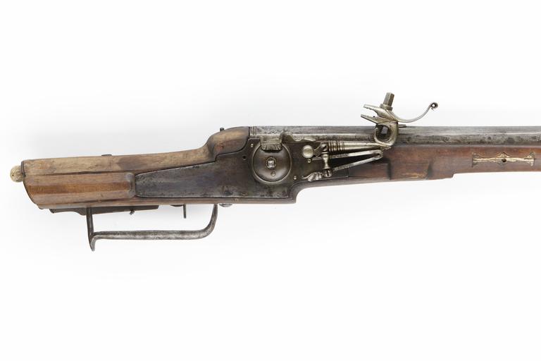 Keywords: Hjullåsbössa från 1634 - Skoklosters slott - 90852.tif LSH artwork sv Hjullåsbössa av dansk typ <br/>Rund över kammaren åttkantig slätborrad tornpipa av stål På kammaren finns följande årtal inslaget 1634 Siktet är av stål och knoppkornet av mässing <br/>Hjullås Blånerat låsbleck av tysk typ - bakåt avsmalnande genom två fall Den kullriga hjulkapseln är fasthållen med ring Låg vertikal krutskärm Hane med lös överkäke och uppsvängt fingergrepp Hanhalsen är omvänt c-formig <br/>Hel stock av brunt trä Tysk kolvtyp Bakplåten och stödkulan är av horn Ursprungligen två låsskruvar och tre pipstift med brickor av hjorthorn Rak skålad så kallad holsteinsk varbygel <br/>Märkt 350 ovanför låsblecket stanstyp 5376<br/> 148 ovanför låsblecket stanstyp 5373<br/>Spår av rött lacksigill ovanför kolvlådan <br/>Enligt 1710 års inventarium p 13 rum II 176-148-1 Gamla Holsteins byssa pijpan afskuren Hiulåås gammal ståck original caption Hjullåsbössa från 1634 <br/> Nyckelord Hjullåsbössa Gevär Vapen 1630-tal Föremålsbild 1634 deer antler - technique bone - wood - steel - brass Knoppkorn size mm 1055 Pipan size mm 110 size mm 1340 kg 5 95 SKO place of origin original filename sm_dig7529 111262 inventory number SKO 12706 90852 CC-BY-SA Erik Lernestål 1630s Wheellock firearms Muskets Photographs of weapons by Erik Lernestål Media contributed by LSH dim-with multiple size templates Media contributed by LSH 2016-05 |