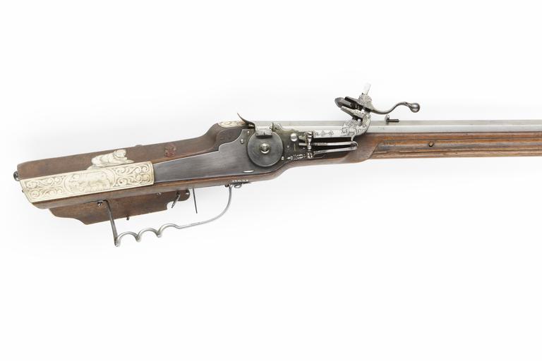 Keywords: Hjullåsbössa, räfflad, 1600 - Skoklosters slott - 90970.tif LSH artwork sv Tysk tillverkning vid 1600-talets mitt Åttkantig pipa åtta räfflor På kammaren stämpel med G K över huvud Stöckel nr 2644 Scahsen ca 1640-1660 Ståndsikte av stål stolpkorn av mässing <br/>Hjullås Plant låsbleck avs tål blånerat Tysk typ bakåt avsmalnande genom två fall Plan hjulkapsel Bakåtböjd krutskärm Hane med lös överkäke Graverad motiv med björn Uppsvängt fingergrepp avslutat i kula <br/>Hel stock av valnöt Tysk kolvtyp Bakplåt av ben Stödkula av stål Kolvlådelock av ben med graverad björn Över kolvlådan björn utskuren ur ben På anslaget samt mellan låsskruvarna björnar av ben Näsband och rörka av ben Varbygel av stål med 3 fingerlägen Avtryckare med snälltryck Tre pipstift det främre i form av skruv med stålbygel original caption Hjullåsbössa räfflad 1600 mid other date century 17 bone - steel - walnut size mm 690 pipa size mm 988 size mm 140 SKO place of origin original filename sm_dig7646 34032 inventory number SKO 13075 90970 CC-BY-SA Erik Lernestål Muskets Photographs of weapons by Erik Lernestål Media contributed by LSH dim-with multiple size templates Media contributed by LSH 2016-05 |