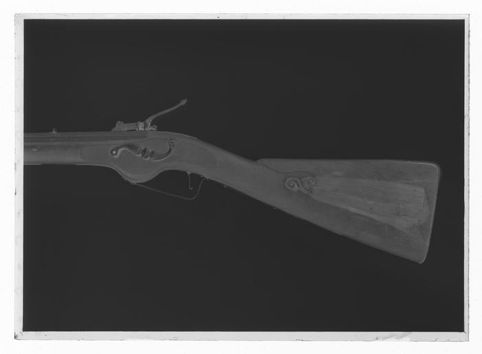 | Keywords: Hjullåslodbössa, hanspännslås, signerat Koch, 1600-talets andra hälft, möjligen Johan Koch - Livrustkammaren - 9764-negative.tif Åttsidig fyraräfflad pipa av stål skålade bommar Rektangulärt svansskruvblad <br/>Riktmedel Inlaxat ståndsikte med u-formig skärm inlaxat spolformigt korn av mässing <br/>Fästning Tre häften Pipan fäst med krysskur samt tre pipstift av stål <br/><br/>Hjullås hanspännslås med plant låsbleck av västeuropeisk typ med fasade kanter på bakspetsen snidad dekor i form av en odjursmask I övrigt graverad dekor blomrankor bakom hjulet en ekorre framför hjulet signatur Koch Hjulet saknas ursprungligen fäst med studel kl 6 Fängpanna med fasetterad framkant låg rak krutskärm fästskruven saknas Platt konturerad hane i form av drake graverad dekor svansen upprullad rund hanskruven avbruten huvudet saknas Lös underkäke käkskruv med litet klotformigt huvud på svarvat skaft Långt svagt svängt fingergrepp avslutat med ekollonformig kula Kraftig fyrsidig hanfjäder med s-formigt nedåtsvängd övre arm under hanfoten Hjulaxeln förenad med slagfjädern saknas med kedjelänk Spänning med kedja som lindas runt hanaxeln Avtryckarstångens fästskruv och fjäder saknas <br/>Fästning Två låsskruvar en i kolvlådan <br/>Avtryckare med upprullad ände Avtryckarbleck med rundad ände <br/><br/>Helstock av valnöt med kolv av fransk typ med kindstöd och kolvlåda Snidad dekor vid kindstödets framände lister runt beslagen blad på kolvlådelocket Beslag av stål bakplåt med fågelhuvudliknande konturerad ryggflik två skruvar Kolvlådelockets ände stålbeslagen S-formigt svängt välvt sidbleck med i mitten en oval plåt Tre svarvade rörkor slät konturerad spets Näsband med bakåtriktad spets S-formig vinkelböjd varbygel bygeldelen svagt profilerad med mittlist framtill avslutad med treklöver bakre armen slät välvd med rundad avslutning två skruvar original caption ca other date - 1650 1679 walnut e3 - eldvapen - stock material valnöt - steel e1247 - eldvapen - pipa lås riktmedel och beslag material stål - brass e4 - eldvapen - riktmedel material mässing g 4410 size mm 190 size mm 732 pipa size mm 1135 LRK Nils von Lantingshausen von Höpken Löjtnant Koch anv e2 - eldvapen - lås; Johan Koch Koch anv e2 - eldvapen - lås; Johan Koch place of origin original filename LN_B09171_012051 47845 inventory number LRK 11183 9764 CC0 Hjullåslodbössa hanspännslås signerat Koch 1600-talets andra hälft möjligen Johan Koch - Livrustkammaren - 9764 tif <gallery caption Different images of same object > File Hjullåslodbössa hanspännslås signerat Koch 1600-talets andra hälft möjligen Johan Koch - Livrustkammaren - 1204 tif File Hjullåslodbössa hanspännslås signerat Koch 1600-talets andra hälft möjligen Johan Koch - Livrustkammaren - 1206 tif </gallery> |