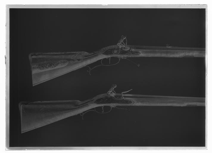 Keywords: Hjullåspistol, puffert, Nordtyskland (Braunschweig?) ca 1560-1570 - Livrustkammaren - 51981-negative.tif Rund pipa med svag trumf och åttsidig kammare kort försänkt i vinkel böjt svansskruvblad dolt av kolvplåten Pipans ovansida helt täckt av etsad och delvis förgylld dekor ett förgyllt tvärband i båda ändar på pipan och däremellan rankdekor mot prickbakgrund På den kantiga delen en förgylld man helbild profil h barett med plym midjekort mantel pluderhosor värja På den runda delen en kvinna helbild profil v lång veckad kjol med tvärbårder överdel med långa hängande ärmar kort plagg över axlarna v hand vid midjan h hand lyft framför ansiktet hållande spegel runt föremål med hundliknande drag skaft Båda figurerna står i fält som framtill avslutas med trepassformig båge med krön i form av fransk lilja Pipans undersida endast grovfilad <br/>Fästning Två häften Pipan fäst med krysskruv samt två pipstift av stål <br/><br/>Hjullås med plant låsbleck med delvis fasade kanter Låsblecket täckt av etsad dekor med bladrankor mot prickbakgrund kantbård av omväxlande tre runda och ett avlångt blankt fält Utvändigt hjul täckt av en rombisk platta och därpå stödram i form av två från nederkanten utstickande från varandra vända etsade drakhuvuden förenade dels nertill dels genom båge med prickdekor ovanför hjulaxeln Drakarna och den rombiska plattan fästade med en skruv genom vardera drakhuvudet Kantig fängpanna på ytterkanten och bakkanten en plan skiva med svängd kant som tillsammans med fängpannas lock bildar en halvcirkel fängpannelocket saknas På skivans ovansida hakan av en grotesk mask jfr nr 17584 På låsbleckets kant därframför en etsad bladranka <br/>Hane med rak kantig kropp på framsidan en utskjutande platta med rundad kant framför käkskruven lös överkäke med antydan till fingergrepp käkskruv med litet fyrsidigt huvud På hanens utsida grövre rankdekor samt antydan till drakhuvud på käkarna Hanfjäder med framtill rundad utsida filade bladrankor dubbelt kraftigt fjäderlöv med dekor som på hanen ena bladet nedanför hjulet det andra uppåtriktat <br/>Låset invändigt svärtat Stor konturerad täckplatta från avtryckare till hjulaxel odjurshuvud framtill <br/>Säkring På låsbleckets bakre del en virvelsäkring L-formig bygel med lång profilerad främre arm avslutad med stort fjäderlöv bakom bygeln ett löv som täcker hela låsbleckets plana del och tvär avslutas vid tungan som skjuts in under kolvplåten Säkring med rinformigt platt grepp profilerad fjäder med dubbelt fjäderlöv som hanfjäderns Fästning Två låsskruvar den bakre samtidigt fästskruv för bältehaken <br/>Avtryckare Rak avtryckare fäst med skruv i kolvplåten <br/><br/>Helstock av stål med i vinkel böjd kolv avslutad med kolvkula kolvkulan delad i två halvor förenade med gångjärn på undersidan fjädrande spärr som nås genom hål i kolvkulan Kolvhalsen rundad framtill en ring med pärlstavsdekor Låsdelen av kolven samt framstocken kantiga sluten laddstocksränna framstocken därframför rundad <br/>Heltäckande etsad dekor i fält åtskilda av blanka linjer fältens botten prickad därpå rankmönster På kolvkulans yttre del bladrankor amt ovanför mittknappen en tom renässanssköld sköldhållare två lejon På kolvkulans fasta del dekor i form av stora flikiga framåtriktade blad På kolvhalsens runda del fem rektangulära fält på ovansidan två med en naken man i det ena och en naken kvinna i det andra halvt vända mot varandra draperingar över skötena På sidorna ytterligare en naken kvinna vänd mot mannen samt på den andra sidan en man i antik rustning och med kroksabel På undersidan en man likaså i antik rustning men med sköld stödd mot marken dessa två är vända mot varandra På kolvryggen därframför fram till pipan ett stort fält med en man i helfigur profil v antik rustning med lejonmaskaron på axeln pluderhosor på huvudet kaskett med plym v hand vid midjan h hand lyft hållande yxa Hela anslagssidan av stocken täcks av ett sotrt fält med bladrankor samt mellan låsskruvarna en ryttare vänd framåt hög hatt med plym dräkt med pluderhosor bakom ryttaren en hund framför honom en hare en hund och en hare På kolvens undersida ett fät runt avtryckaren samt ett fält därframför med bladrankor samt två fåglar d en främre en sittande papegoja På laddstocksrännan längsgående dekor i form av en bladranka hund och hare Som överrörka och näsband ett tvärband med förgylld rankdekor I övrigt har samtliga större figurmotiv rester av förgyllning <br/><br/>Tillbehör <br/>Laddstock av stål l 318 mm original caption ca other date - 1560 1570 steel e1279 - eldvapen - pipa lås stockbeslag och laddstock material stål g 2220 size mm 340 pipa size mm 544 LRK Erik XIV av Sverige Gustav II Adolf av Sverige Tre Konungar på Åbo slott 1993 place of origin original filename LN_B03306_006186 54178 inventory number LRK 17583 51981 CC0 Hjullåspistol puffert Nordtyskland Braunschweig ca 1560-1570 - Livrustkammaren - 51981 tif <gallery caption Different images of same object > File Hjullåspistol puffert Nordtyskland Braunschweig ca 1560-1570 - Livrustkammaren - 43271 tif File Hjullåspistol puffert Nordtyskland Braunschweig ca 1560-1570 - Livrustkammaren - 26246 tif </gallery> |