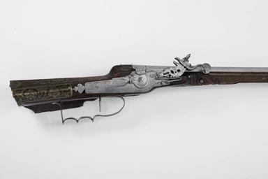 Keywords: Hjullåsstudsare - Livrustkammaren - 82468.jpg Åttsidig räfflad pipa av stål På kammaren graverad signering DANIEL VOGELSANG AVS RIGA <br/>Riktmedel Graverat ståndsikte av stål spolformigt stolpkorn av mässing <br/>Fästning Tre häften Pipan fäst med krysskruv underifrån främre varbygelskruven samt två pipstift av stål <br/><br/>Hjullås med plant låsbleck av tysk typ med graverad dekor Bakre spetsen bladflikflormig Hjulet fäst med ring och skruvar kl 3 6 och 9 bakåtriktad genombruten flik På låsbleckets graverat Odium et Inuidia cordis dolorem acit Hat och ovilja skadar hjärtat Fängpanna med bakåt-uppåtböjd krutskärm Graverad platt hane med lös överkäke med genombruten skärm s-formigt svängt grepp med graverad plan ytterände med flikar Hanhals och hankropp genombrutna graverade och oregelbundet konturerade Låsets insida täckt med plåtar med graverad dekor i form av fågel och blad signatur D F S RIGA 1677 <br/>Fästning Två låsskruvar <br/>Avtryckare med snälltryck <br/><br/>Brun helstock med kolv av tysk typ kolvlåda och snidad bladvolut av ben på vingen Snidat delfinhuvud med ögon inlagda med ben och horn framför varbygeln Stödkula av stål Beslag och inläggningar av graverad mässing Kolvlådelock av trä med bladdekor På anslaget en oval platta hållen av två putti på plattan en öppen krona Två runda låsskruvbrickor omgivna av delfiner och bladslingor Överrörka och näsband i ett graverat med blommor och fjärilar Varbygel av stål med 3 fingerlägen armarna avslutade med flikiga ändar På bygeln graverat en fågel original caption hjullåsstudsare - LRK 8947<br/> Nyckelord Hjullås Studsare Föremålsbild 1677 steel e1247 - eldvapen - pipa lås riktmedel och beslag material stål - brass e478 - eldvapen - riktmedel stockbeslag och stockdekor material mässing - wood e3 - eldvapen - stock material trä size mm 1032 size mm 714 pipa size mm 132 g 4570 LRK Basutställning Odium et Inuidia cordis dolorem acit anv e2 - eldvapen - lås; slaktnr 11195 D F S RIGA 1677 anv e2 - eldvapen - lås; Daniel Vogelsang Fogelsang DANIEL VOGELSANG AVS RIGA anv e1 - eldvapen - pipa; Daniel Vogelsang Fogelsang place of origin Riga original filename lm_dig2177 44043 inventory number LRK 8947 82468 CC-BY-SA Göran Schmidt <gallery caption Different images of same object > File Hjullåsstudsare v sida - Livrustkammaren - 5422 tif </gallery> Göran Schmidt Wheellock musket images from Livrustkammaren Media contributed by LSH dim-with multiple size templates Media contributed by LSH unmatched creator Media contributed by LSH unmatched keyword Media contributed by LSH 2013-10 |