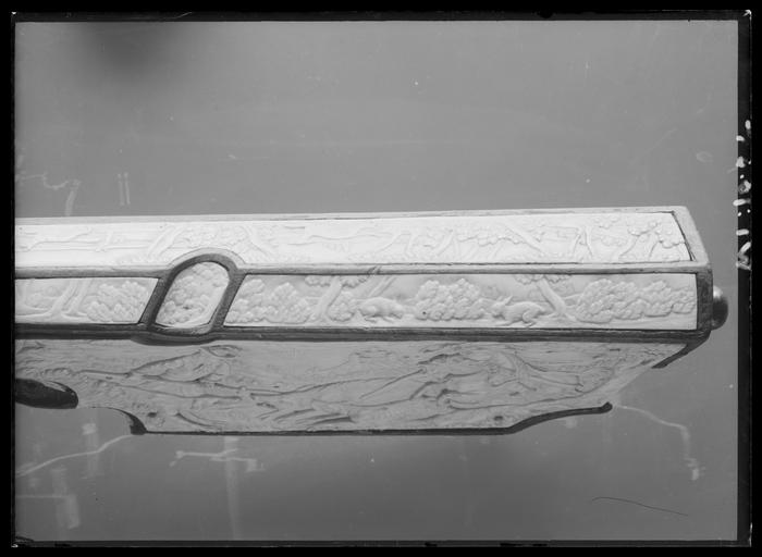 Keywords: Hjullåsstudsare, Westphalen ca 1660 - Livrustkammaren - 36191.tif LSH artwork sv Åttsidig sjuräfflad pipa bombredd 2 8 mm Rektangulärt svansskruvblad På kammaren en sköldformig stämpel med hand och därovanför tre otydliga bokstäver G H N LRK vägl 1921 155 Dekor i form av graverade blomrankor på kammaren runt siktet och bakom kornet På kammaren dessutom ett fält med landskap med en hjort och två hundar Riktmedel Ståndsikte av stål med bred u-formig skärm Spolformigt korn av mässing båda inlaxade två laxningar för siktet Fästning Pipan fäst med krysskruv underifrån främre varbygelskruven samt tre pipstift av trä Hjullås av tysk typ plant låsbleck l 205 mm Dekor i form av graverade blomrankor i låg relief mot mörkskrafferad bakgrund Bakom hjulet ett ovalt fält med landskap med en kavalleristrid Utanpåliggande hjul fäst med halvcirkelformig uppåt breddad ring fäst med två skruvar kl 3 och 9 Svängd eldskärm avslutad med horisontell hjärtformig spets Fängpannelock med rörlig arm lockets framkant fasad och försedd med graverad dekor svängt rundat fingergrepp framtill avslutat med ett treflikigt blad Hane med fyrsidig kropp med rundad räfflad utsida ringformig hanhals med stor skärm lös överkäke Hals och käkar graverade som fågelhuvuden Uppåtböjt fingergrepp avslutat med en rund platt med spiralgravering Käkskruv med fyrsidigt huvud upptill koniskt med kulformig avslutning Hanfjäder med fasade kanter konturerad studel med glasögonformig genombrytning Avtryckarstången och fängpannelockets stoppfjädrar blånerade Fästning Två låsskruvar Avtryckare med konturerat och profilerat snälltryck Helstock av rödmålat trä rödbok nästan helt täckt med elfenbensplattor med snidad dekor Kolv av tysk typ med kolvlåda och vinge framtill avslutad med volut Den snidade dekoren föreställer landskap med jaktscener se Hellner Kolvlådelock av elfenben Bakplåt av elfenben med en satyr Kolvkula av stål Spetsrörka av elfenben med maskaron Bred varbygel av stål med tre fingerlägen korta genombrutna armar på bygeln graverad rankdekor samt ovalt fält med landskap med jägare hund och hjort Tillbehör Laddstock av rödmålat trä l 781 mm i ena änden ett invändigt gängat stålrör l 120 mm I den andra en benskoning l 42 Plattan kommer fram ur munnen på ett snidat fiskhuvud Gåva till Karl XI från landshövdingen friherre Augustin Leijonsköld 1634-1682 original caption ca 1660 steel e1247 - eldvapen - pipa lås riktmedel och beslag material stål - brass e4 - eldvapen - riktmedel material mässing - ivory e78 - eldvapen - stockbeslag och stockdekor material elfenben - beech e3 - eldvapen - stock material rödbok g 4280 size mm 774 pipa size mm 1068 LRK Karl XI av Sverige Augustin Leijonsköld basutställning Gallica 1945 Livrustkammarens basutställning 1978 Krigets prakt 2003-2004 place of origin DE Westphalia original filename LN_B16594_019474 39530 inventory number LRK 2920 36191 CC0 Hjullåsstudsare Westphalen ca 1660 - Livrustkammaren - 36191-negative tif <gallery caption Different images of same object > File Hjullåsstudsare - Livrustkammaren - 95341 tif File Hjullåsstudsare Westphalen ca 1660 - Livrustkammaren - 43315 tif File Hjullåsstudsare Westphalen ca 1660 - Livrustkammaren - 27630 tif File Hjullåsstudsare Westphalen ca 1660 - Livrustkammaren - 19068 tif File Hjullåsstudsare Westphalen ca 1660 - Livrustkammaren - 10775 tif File Hjullåsstudsare Westphalen ca 1660 - Livrustkammaren - 78992 tif File Hjullåsstudsare Westphalen ca 1660 - Livrustkammaren - 44749 tif File Hjullåsstudsare Westphalen ca 1660 - Livrustkammaren - 60420 tif File Hjullåsstudsare Westphalen ca 1660 - Livrustkammaren - 1946 tif File Hjullåsstudsare Westphalen ca 1660 - Livrustkammaren - 26180 tif File Hjullåsstudsare Westphalen ca 1660 - Livrustkammaren - 61870 tif File Hjullåsstudsare - Livrustkammaren - 51368 tif File Hjullåsstudsare Westphalen ca 1660 - Livrustkammaren - 53310 tif File Hjullåsstudsare Westphalen ca 1660 - Livrustkammaren - 1945 tif File Hjullåsstudsare Westphalen ca 1660 - Livrustkammaren - 10506 tif File Hjullåsstudsare Westphalen ca 1660 - Livrustkammaren - 78991 tif File Hjullåsstudsare Westphalen ca 1660 - Livrustkammaren - 78990 tif File Hjullåsstudsare Westphalen ca 1660 - Livrustkammaren - 60464 tif File Hjullåsstudsare Westphalen ca 1660 - Livrustkammaren - 77541 tif File Hjullåsstudsare Westphalen ca 1660 - Livrustkammaren - 70431 tif File Hjullåsstudsare Westphalen ca 1660 - Livrustkammaren - 71153 tif File Hjullåsstudsare Westphalen ca 1660 - Livrustkammaren - 61871 tif File Hjullåsstudsare Westphalen ca 1660 - Livrustkammaren - 60459 tif File Hjullåsstudsare Karl XI - Livrustkammaren - 31010 tif File Hjullåsstudsare Westphalen ca 1660 - Livrustkammaren - 53309 tif File Hjullåsstudsare Westphalen ca 1660 - Livrustkammaren - 70432 tif File Hjullåsstudsare Westphalen ca 1660 - Livrustkammaren - 70433 tif </gallery> Muskets Media contributed by LSH dim-with multiple size templates Media contributed by LSH 2016-12