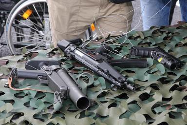 Keywords: HK69A1, MP5, Glock 17 Kokonaisturvallisuus 2015 02.JPG en Finnish military 40 mm HK69A1 grenade launcher MP5 submachine gun and Glock 17 pistol with Streamlight TLR-2 combination tactical light and laser sight on display at Comprehensive security exhibition 2015 in Tampere fi 40 mm HK69A1 kranaattipistooli MP5-konepistooli ja Glock 17 pistooli varustettuna Streamlight TLR-2 taktisen valon ja lasertähtäimen yhdistelmällä kalustoesittelyssä Kokonaisturvallisuus 2015 messuilla Tampereella own MKFI 2015-09-05 Weapons of Finland Heckler Koch HK69 HK MP5 Pistols of Finland Submachine guns of Finland Glock 17 Tactical lights Laser sights Comprehensive Security Exhibition 2015 Taken with Canon EOS 60D Taken with Canon EF-S 15-85mm F3 5-5 6 IS USM Files by User MKFI |