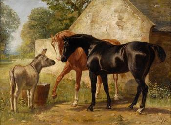 Keywords: HL Ein neuer Freund.jpg datiert 1890 Oil on canvas cm 56 76 institution http //www duesseldorfer-auktionshaus de/ 2011/1 other versions PD-old-100 Images from Düsseldorfer Auktionshaus 19th-century unidentified painters 1890 paintings 19th-century portrait paintings location missing 19th-century paintings of horses Paintings of donkeys Black horses in art Oil paintings of horses |