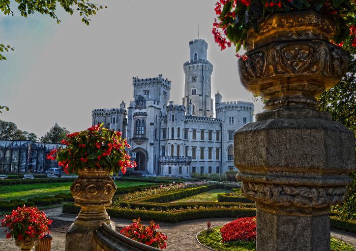 Keywords: hluboká deep lock garden flowers monument czech republic white stone gothic 13th century