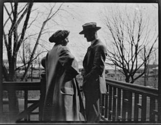 Keywords: 1900s clothes hats women men railways blackandwhite monochrome black and white “John Gzowski and Betty Caldwell Apl 11/09” John Gzowski and Betty Caldwell. One of a series of photographs taken on the veranda of the Rathbun house in Main Street, Deseronto, Ontario, on 11 April 1909. Railway cars are visible in the background between the garden and the waterfront. “John Gzowski and Betty Caldwell Apl 11/09” John Gzowski and Betty Caldwell. One of a series of photographs taken on the veranda of the Rathbun house in Main Street, Deseronto, Ontario, on 11 April 1909. Railway cars are visible in the background between the garden and the waterfront. |