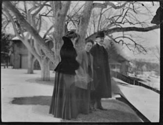 Keywords: women men trees snow winter clothes hats 1900s rathbunfamily blackandwhite monochrome black and white "Mother, Mrs Gaylord & Mr Bourne - Feby '08" Two women and a man, standing beneath a tree [possibly in Northampton, Massachusetts], taken in February 1908. 'Mother' is Bunella Rathbun [born Bunella McMurrich, 11 June 1853], second wife of Edward Wilkes Rathbun. "Mother, Mrs Gaylord & Mr Bourne - Feby '08" Two women and a man, standing beneath a tree [possibly in Northampton, Massachusetts], taken in February 1908. 'Mother' is Bunella Rathbun [born Bunella McMurrich, 11 June 1853], second wife of Edward Wilkes Rathbun. |