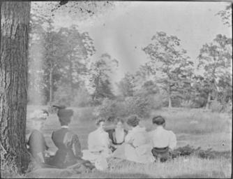 Keywords: women clothes hats trees 1900s blackandwhite monochrome outdoor black and white "Eagle Hill - afternoon tea, July" Photograph of six women underneath a tree, taken July 1908. Slightly water-damaged. "Eagle Hill - afternoon tea, July" Photograph of six women underneath a tree, taken July 1908. Slightly water-damaged. |
