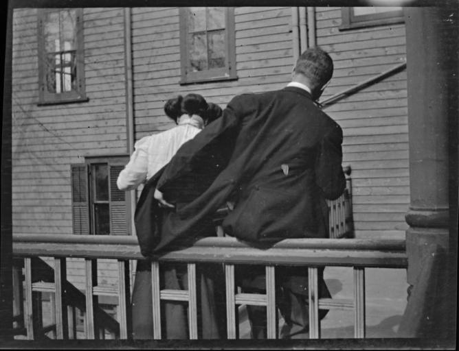 Keywords: 1900s houses men clothes women blackandwhite monochrome black and white "Marvin & Betty Caldwell, Apl. 11/09" Rear view of the photographer's brother, Marvin Rathbun and Betty Caldwell. One of a series of photographs taken on the veranda of the Rathbun house in Main Street, Deseronto, Ontario, on 11 April 1909. "Marvin & Betty Caldwell, Apl. 11/09" Rear view of the photographer's brother, Marvin Rathbun and Betty Caldwell. One of a series of photographs taken on the veranda of the Rathbun house in Main Street, Deseronto, Ontario, on 11 April 1909. |