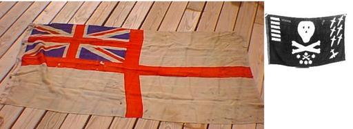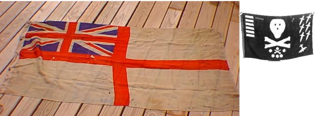 Keywords: HMS Sibyl White Ensign & Jolly Roger.jpg en The actual White Ensign flown on Sibyl in Singapore Harbor at the signing of the surrender of the Japanese 1945 along with a copy of her Jolly Roger own My own photo Mike Caswell 1998 Check categories 2008 December 23 en wikipedia HMS_Sibyl_ P217 HMS Sibyl P217 |
