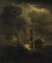 Keywords: HMS Victory sinking.jpg en Peter Monamy was one of the first English artists to establish a native school of marine painting His work is often alleged to show an overwhelming influence of the Dutch style but the authentic works created by him during his 45 year London career convincingly demonstrate that this influence was a great deal less than overwhelming In 1696 Monamy aged 15 was bound apprentice for seven years to a former Master of the Painter-Stainer's Company and was obviously trained and taught by him It has repeatedly been asserted that he may have worked in van de Velde ™s studio in Greenwich but there is no evidence whatsoever of this supposed employment Any such employment is exceedingly unlikely and in fact virtually impossible The van de Veldes ceased to maintain a studio in Greenwich soon after the 1689 Revolution of William III and apparently moved their business to Covent Garden At this time Monamy was 8-10 years old <br /> The Loss of the 'Victory' 4 October 1744 is a dramatic night scene in the native English taste It is highly atmospheric slightly naive and discernibly unlike anything by the van de Veldes The ship was recognized in her day as ˜the finest ship in the world ™ but was wrecked and lost with all hands on the Caskets near the island of Alderney in the English Channel after becoming separated from the rest of the English fleet in a gale <br /> In the painting which is portrait format the solitary vessel is going down with lanterns alight and firing two of her guns “ their light eerily mirrored by the moonlight streaming down from behind the dark storm clouds in the sky The painting could arguably be seen as an early visual example of the 18th-century taste for the sublime http //collections nmm ac uk/collections/objects/11853 html Collections of the National Maritime Museum creator Peter Monamy century 18 oil canvas cm 76 63 5 Institution National Maritime Museum credit line National Maritime Museum Greenwich London Caird Fund BHC0361 PD-old-100 A larger composition directly related to this painting was engraved by P C Canot and published in 1746 Victory ship 1737 Paintings in the National Maritime Museum London Peter Monamy Paintings of ships in distress Sinking ships in art 18th-century oil on canvas paintings in the United Kingdom 18th-century sailing ships in paintings Night in paintings 1744 in England Ships at night |