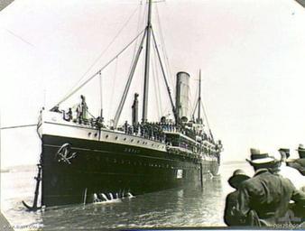 Keywords: HMT OMRAH (A5).jpg Brisbane QLD 1914-09-24 HMT OMRAH A5 Pulling out from Pinkenba Wharf The Omrah carrying troops of the 9th Battalion 1ST AIF was part of the convoy carrying the first contingent to Egypt DONOR B Jefferson Ship Type Passenger ship 1898 Built by Fairfield Govan United Kingdom Yard No 404 Launch Date 3 9 98 Date of completion 1 1899 Length overall LPP 139 6 m Beam 17 3 m Tons 8291 Speed 18 kn History 1899 Named Omrah for Orient S N Co Ltd Glasgow Flag United Kingdom 12 5 18 Torpedoed by submarine 40nm SWS Cape Spartivento Australian War B Jefferson 1914-09-24 PD-Australia DEFAULTSORT Omrah Omrah ship 1899 Pinkenba Wharf |