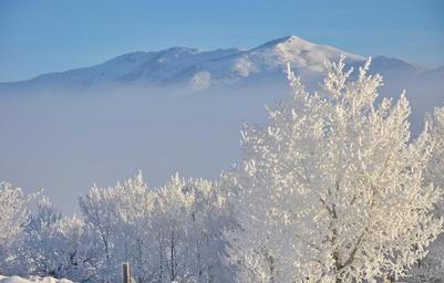 Keywords: hoar frost snow white winter landscape frost frozen landscape nature snow tree white winter scene blue mountain