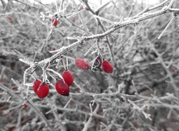 Keywords: hoarfrost winter magic cold wintry nature berry red rose hip icy frozen snow crystals frosty iced eiskristalle frost