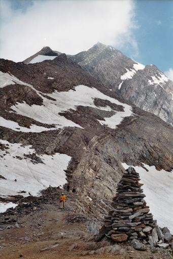 Keywords: Hochfeiler oberer Suedwestgrat.jpg Hochfeiler upper south-west-ridge Hochfeiler Oberer Südwestgrat own Haneburger 46 971497 11 735716 region IT_heading W Hochfeiler Cairns in Italy Images by Haneburger