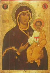 | Keywords: Hodegetria (Spaso-Preobrazhensky Monastery, Yaroslavl).jpg ru Богомате ь Одигит ия Смоленская Школа или худ цент Я ославль 1564 г 138 × 95 см Я ославский исто ико-а хитекту ный и художественный музей заповедник Я ославль Россия Инв 40944 П оисходит из местного яда иконостаса Спасо-П еоб аженского собо а Спасского монаты я в Я ославле Отличительной особенностью я ославской Одигит ии является изоб ажение в ве хних углах иконы двух ангелов в облачных к угах несущих о удия Ст астей Эти о удия к ест т ость и копие напоминают о г ядущих муках Х иста усиливая т агичность и без того ско бных ликов http //www icon-art info/masterpiece php mst_id 1126 where library Author 1564 г PD-Art Icons of Spaso-Preobrazhensky Monastery Yaroslavl Hodegetria Icons in Yaroslavl Museum-Preserve Mary |