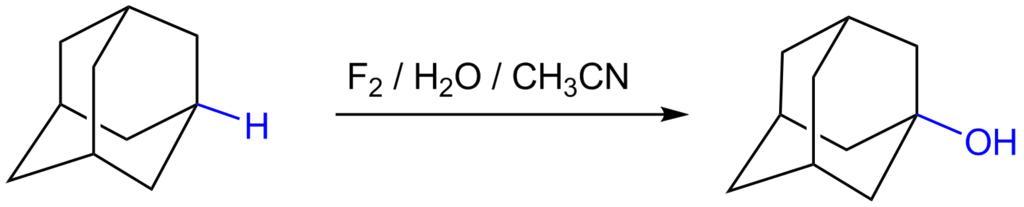 Keywords: HOF adamantane.png oxidation of adamantane by HOF-CH<sub>3</sub>CN Own 2008-06-24 puppy8800 chemical Hypofluorous acid