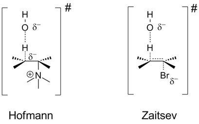 Keywords: Hofmann-elimination-transition-state.png en The transition states of a Hofmann-elimination and a Zaitsev-elimination which can be used to explain regioselectivity nl De overgangstoestanden van een Hofmann- en een Zaitsev-eliminatie welke gebruikt kunnen worden om regioselectiviteit te verklaren own Typhoner <span class signature-talk >talk</span> 12/01/2011 PD-chem The transition states of a Hofmann-elimination and a Zaitsev-elimination made with ChemDraw Please drop me a note if you need the source file Elimination reactions |