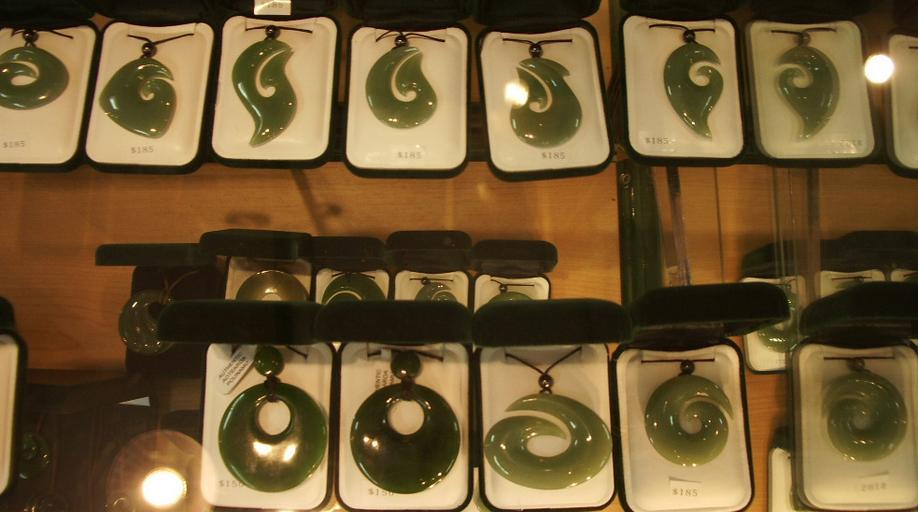 Keywords: Hokitika4.jpg Hei Matau fish hook and other symbols<br>Greenstone pendants in a shop in Greymouth NZ own Sarang 2008-11-11 This picture was made 2005-01-21 in one of the shops of the <b>Jade factory</b> not in Hokitika but in Greymouth <br>At the http //www jadefactory com homepage of the jade factory many facts are explained about jade the carving process and the meanings of the different pendant shapes hook spiral twist and others Greymouth Greenstone jewellery Hei matau |